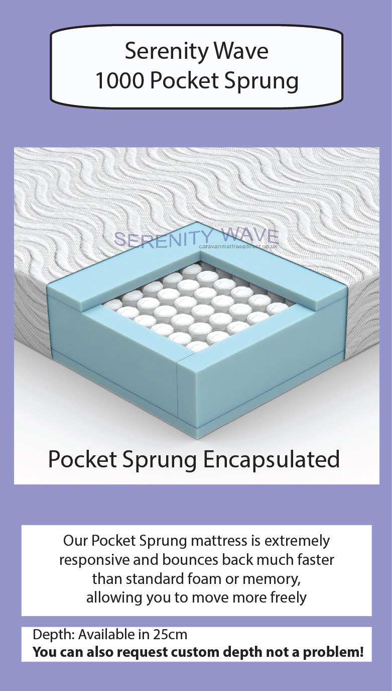 Pocket spring: Luxury Foam Encapsulated Pocket Sprung Mattress Experience unparalleled sleep comfort on the move! Upgrade your leisure vehicle with our premium Foam Encapsulated Pocket Sprung Mattress, expertly engineered to provide home-quality sleep wherever your journey takes you. This mattress is the ultimate comfort solution for Caravans, Motorhomes, Narrowboats, and Marine environments, built to withstand the rigours of travel while delivering deep, restorative rest.
