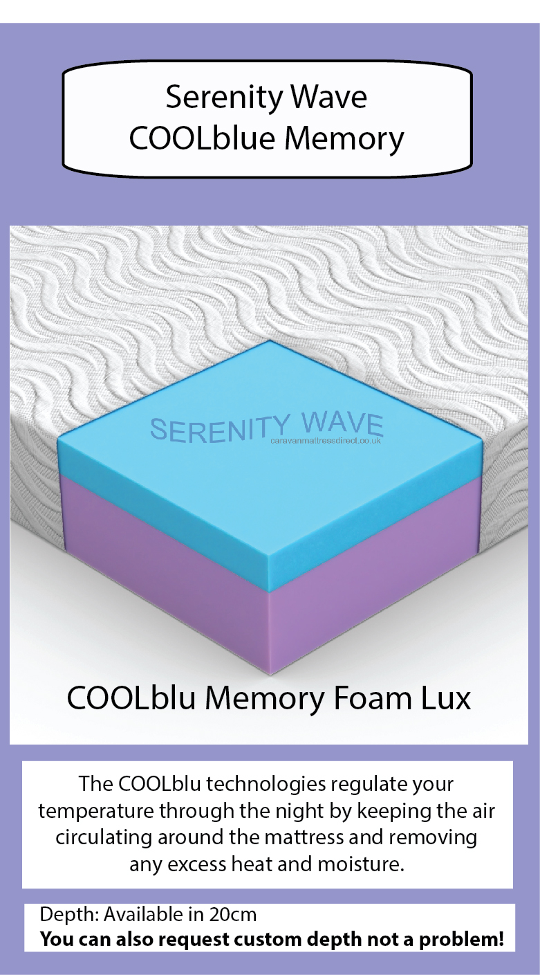 Introducing our advanced COOLblu® Memory Foam Mattress, the perfect solution for those who love the luxurious, contouring feel of memory foam but struggle with overheating. This premium mattress is expertly engineered for superior temperature regulation, making it the ideal upgrade for your Caravan, Motorhome, Narrowboat, or Marine vessel.