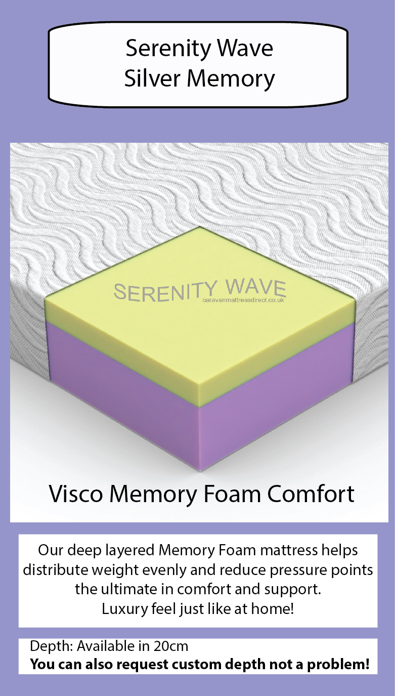 Memory foam: Luxury Handcrafted Memory Foam Mattress (Made in Yorkshire) Indulge in five-star comfort on your next adventure, proudly made in Britain! Experience the ultimate luxury sleep experience with our premium Memory Foam Mattress, crafted to deliver deep, pressure-relieving comfort wherever you travel. This is the ultimate comfort solution for your Caravan, Motorhome, Narrowboat, or Marine cabin, giving you a soft, enveloping feel that rivals the best hotel beds.